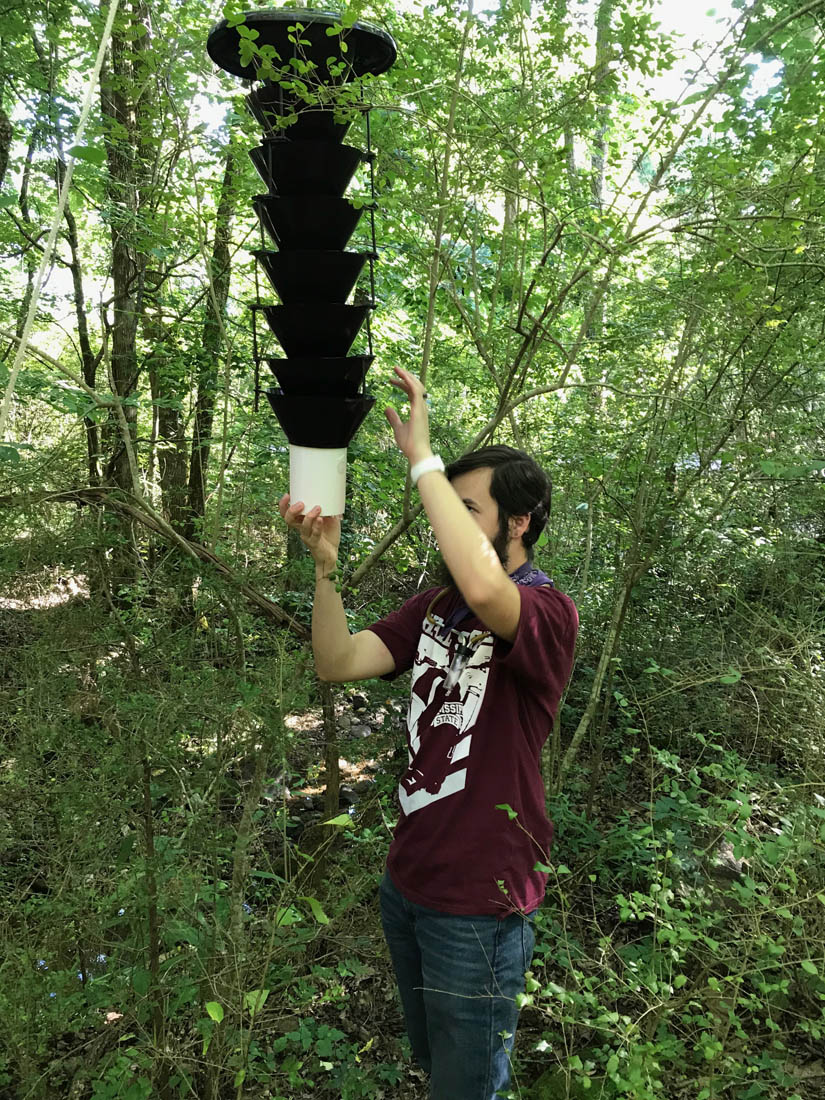 JoVonn Hill collecting leaf and soil samples for Berlese funnel extraction