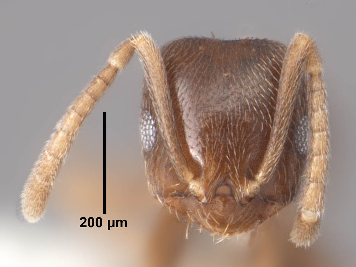 Brachymyrmex obscurior, full face view of the head of a worker (Photo by Joe A. MacGown) |