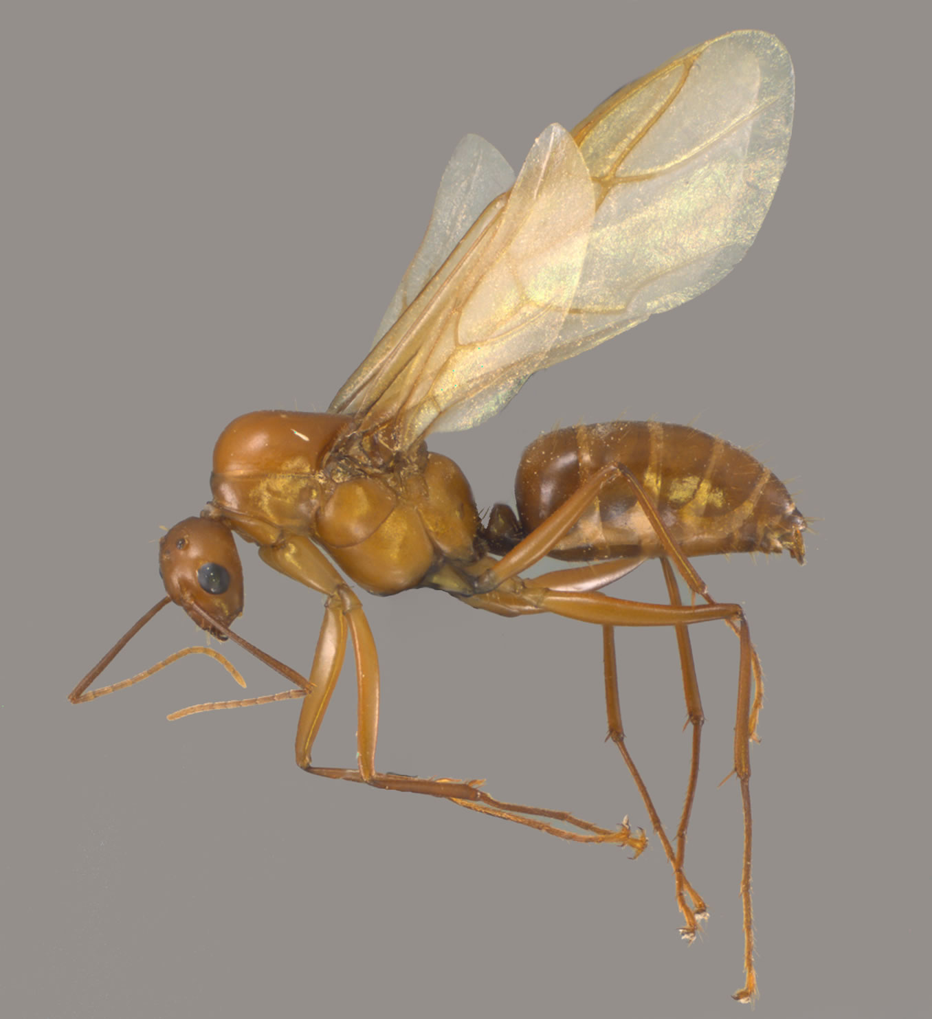Camponotus castaneus, profile view of alate female (click image to enlarge) |