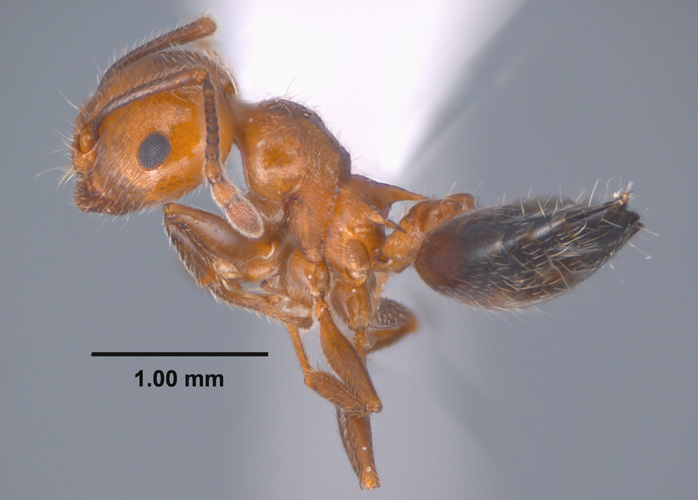 Crematogaster pilosa, side view of a worker (click image to enlarge). |