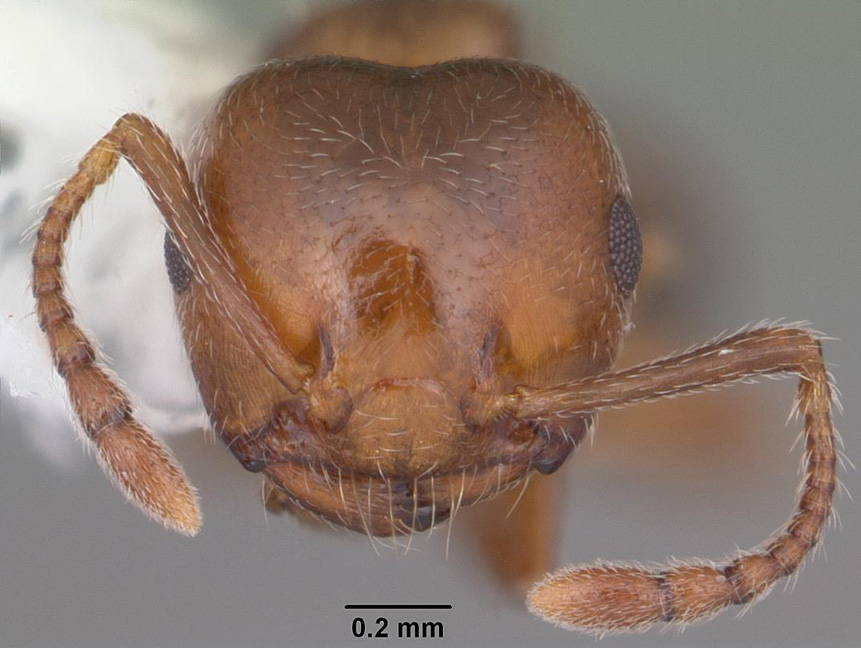 Crematogaster pinicola, full face view of a worker (click image to enlarge). |