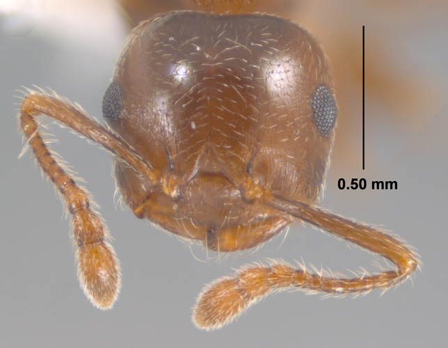 Crematogaster vermiculata, frontal views of the heads of workers Click image to enlarge). |
