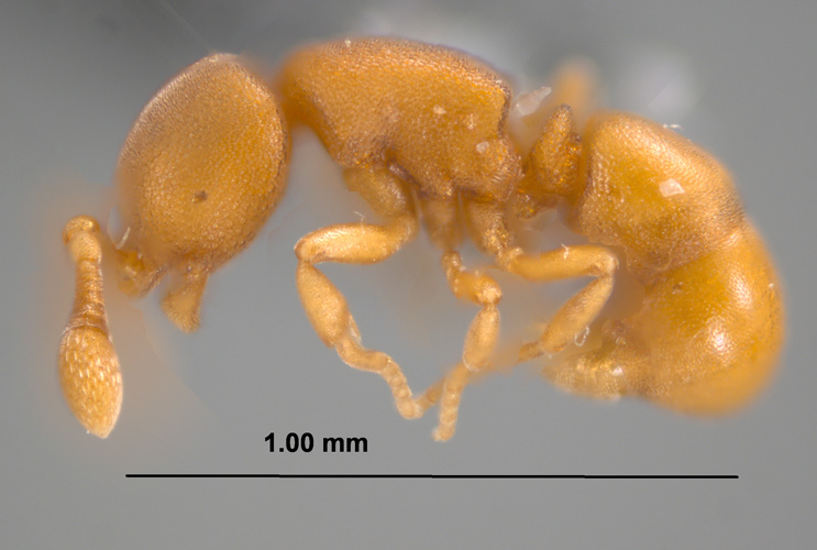 Discothyrea testacea, side view of a worker (click image to enlarge). |