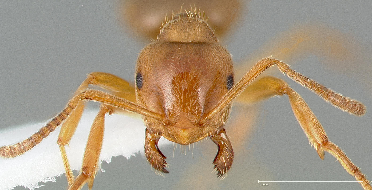Lasius aphidicola, full face view of a worker (click image to enlarge). |
