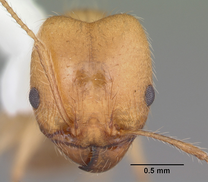 Pheidole morrisi, full face view of a minor worker (click image to enlarge). Photo courtesy of http://www.antweb.org/ |