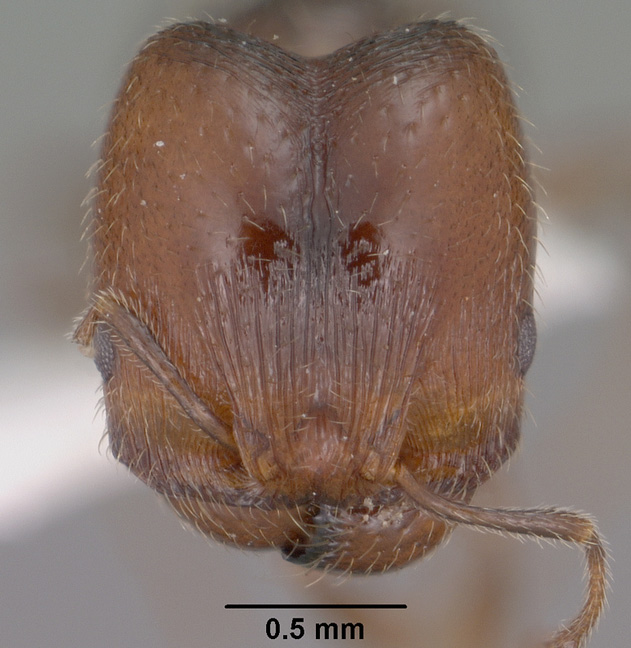 Pheidole pilifera, full face view of a minor worker (click image to enlarge). Photo courtesy of http://www.antweb.org/ |