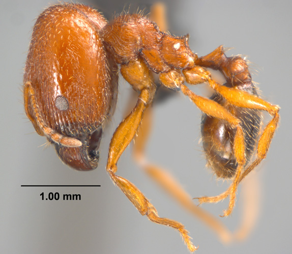 Pheidole pilifera, side view of a minor worker (click image to enlarge). |