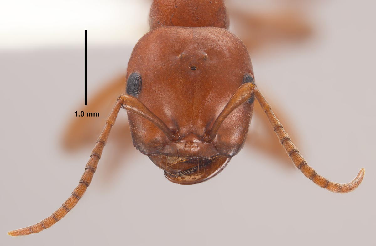 Polyergus mexicanus, full face view of a worker (photo by James Lewis and Joe MacGown) |