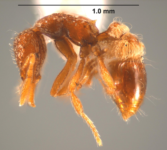 Strumigenys dietrichi, profile view of worker (click image to enlarge). |