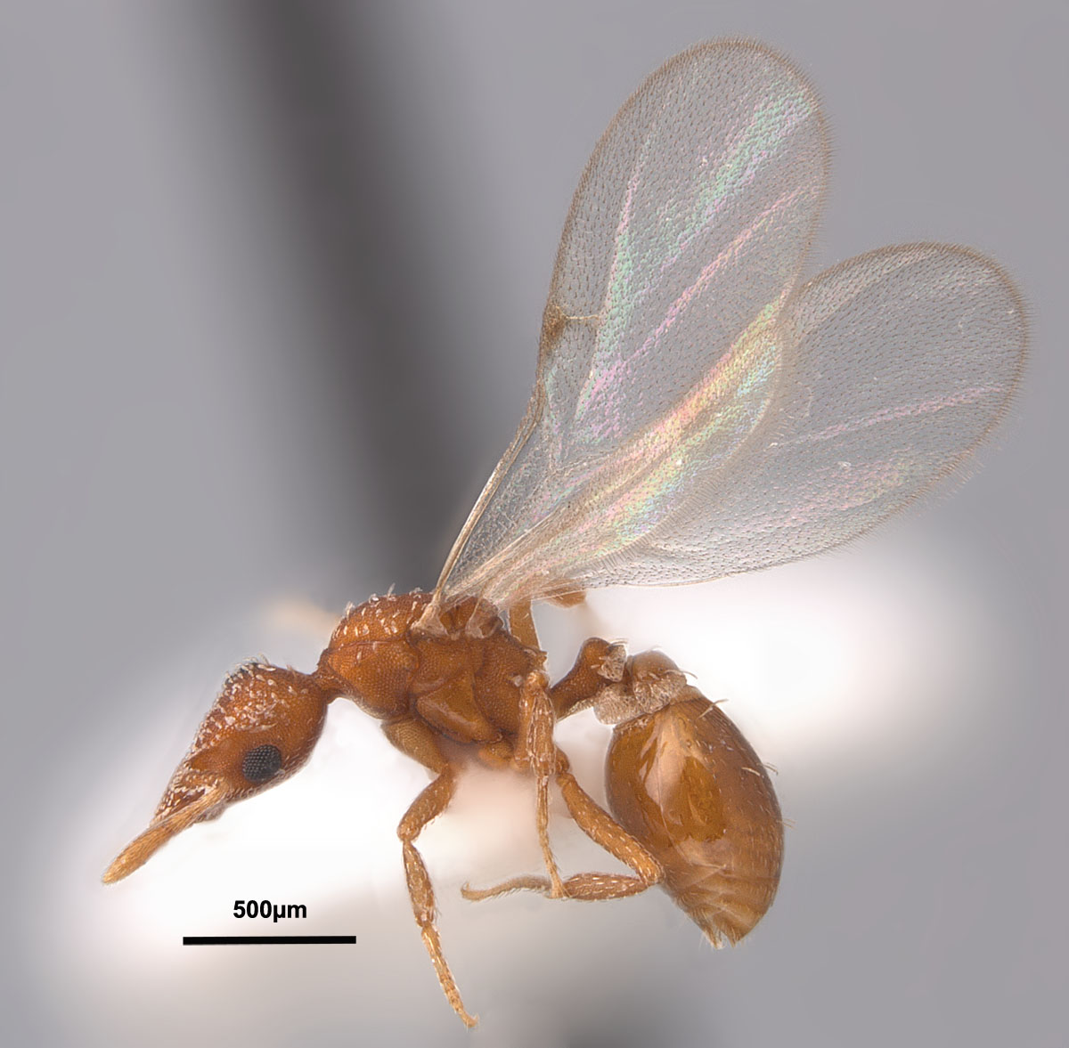 Strumigenys epinotalis , profile view of queen (click photo to enlarge). |